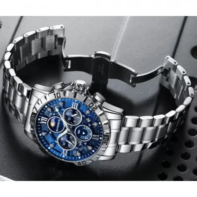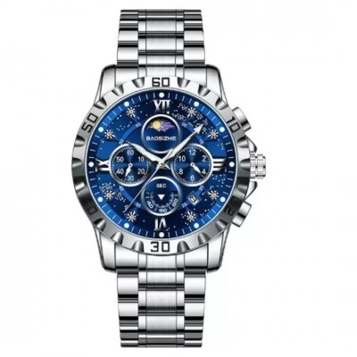 Silver-Tone Baosizhe Wristwatch Luminous Timepiece for men