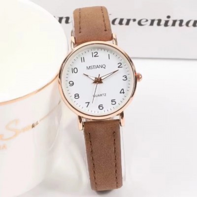 Women’s Luminous Retro Small Round Leather Quartz Watch – Brown - 13x8x3 Cm