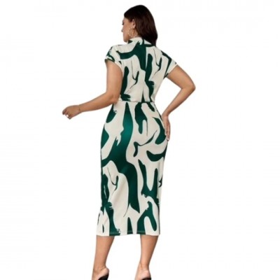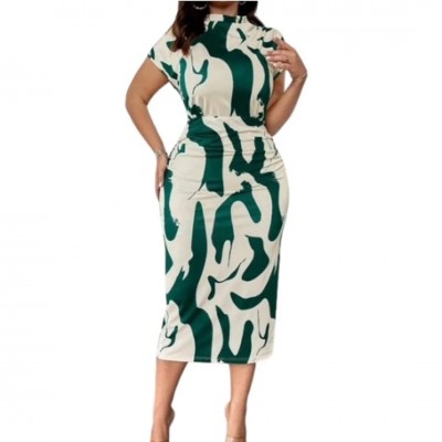 Colorblock Print Midi Dress - Green